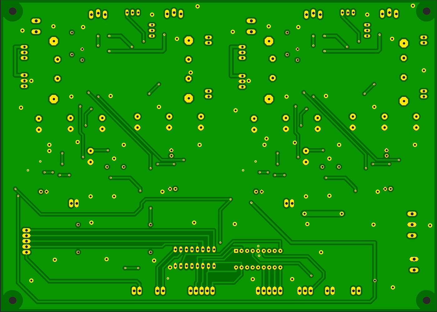 Buvo pagamintas variantas ne su klasikiniu maitinimu (toroidas ir dideli elektrolitiniai kondensatoriai) bet su impulsiniu maitinimu. Visiškai švarus ir tylus stiprintuvas, nors daugelis audiofilų kritikuoja impulsinį maitinimą audio sistemose. Praktiškai triukšmai mažesni nei su klasikiniu maitinimu. Čia aprašytas būtent šis, paskutinis stiprintuvo variantas. Vėliau, norint atsisakyti jungiamųjų laidų tarp plokščių suprojektuota didesnė pcb, kurioje telpa beveik visas stiprintuvas, jo distancinis valdymas, kolonėlių apsauga. (Paskutinė foto). Čia detaliai parodyta plokštės viršutinė pusė ir apačia. Čia matome stiprinuvo oscilogramas